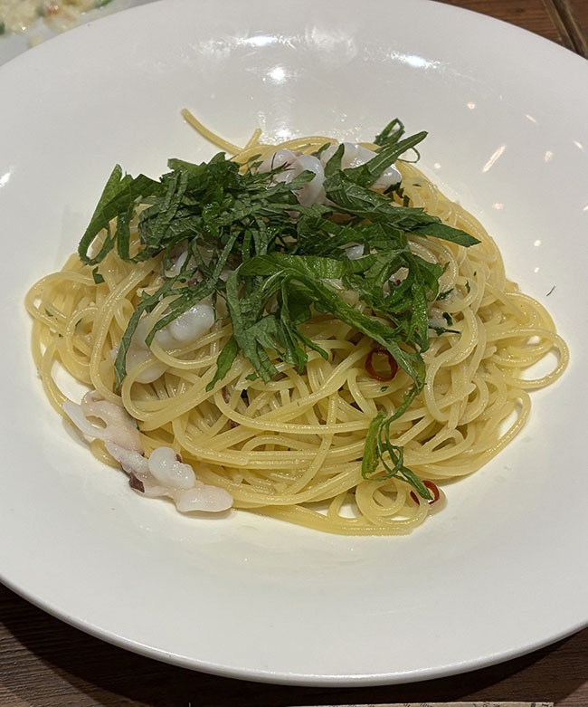 北海道産水ダコと大葉のペペロンチーノ